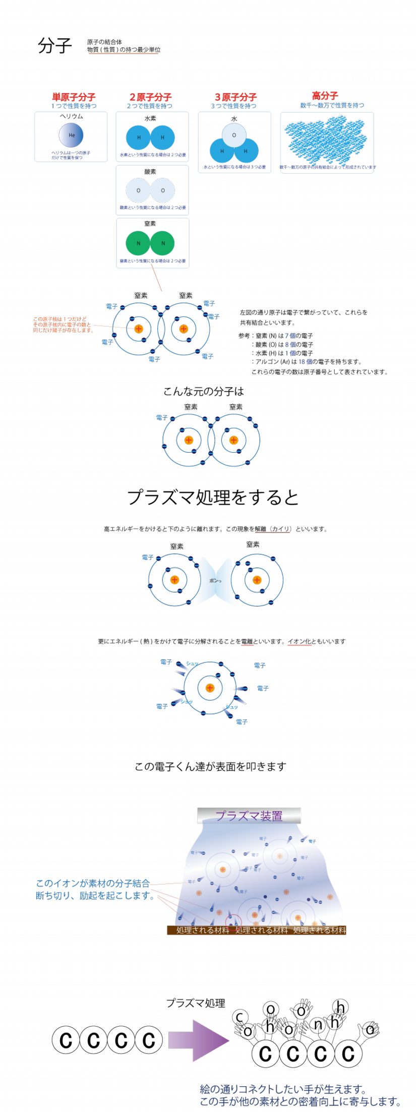 材料表面にエネルギーを与え最高な状態を作ることなのです。分子レベルから改質していきます