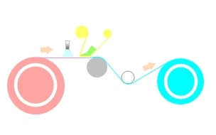リキッドワイピングはフィルム表面に洗浄材をスプレーした後にナノワイパーで拭き取ります。 油分などブリードアウト層に非常に有効ですがワイプ材質とリキッド液種、接圧などをコントロールしないと細かいキズが入る場合があるので慣れと実績が必要です。更に粘着ロールでマイクロな静電気異物を除去します。
