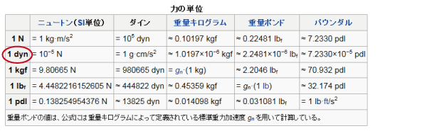 1Nの100000分の1が1ダイン(dyn)ということですね。
